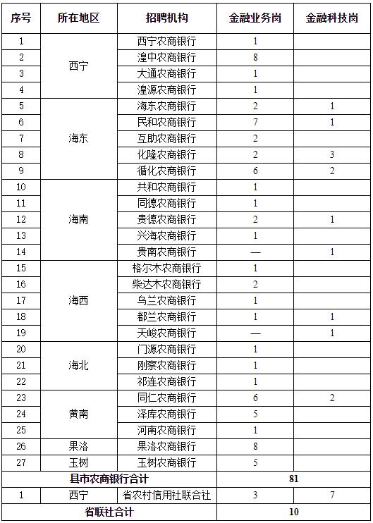 青海省农村信用社联合社及全系统辖内各县市农商银行(定向报名)。