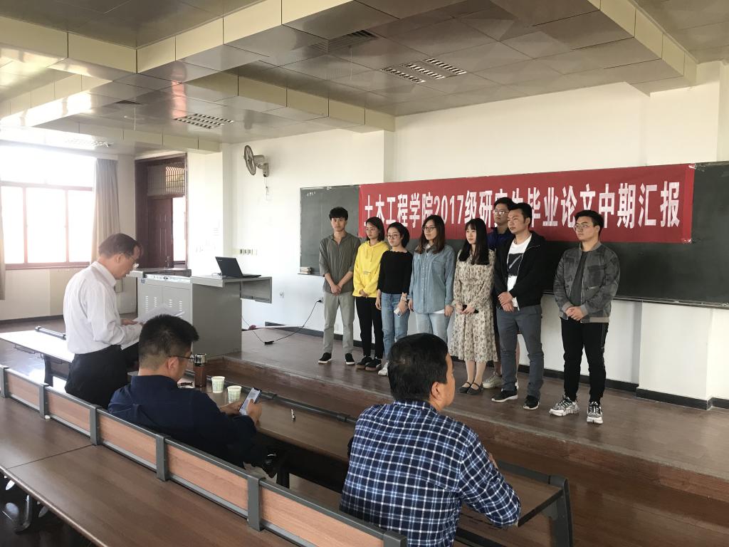 汇报会上,教研科长何世丹宣读受检学生名单,土木学院2017级全体研究生逐一汇报了论文写作进度,介绍了论文的写作背景、思路、论文的主要内容以及论文写作中遇到的难点。答辩组专家对每一位论文作者进行了专业的指导。