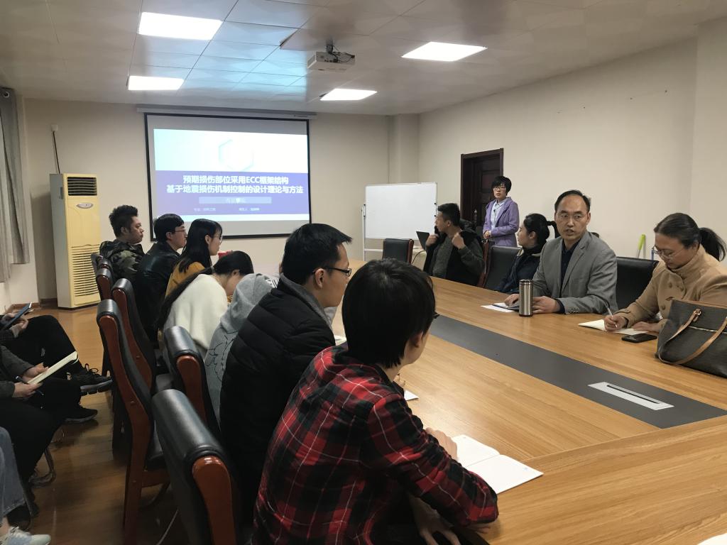 陆婷婷博士将自己近期的研究内容和成果进行了汇报和讨论。课题针对钢筋混凝土框架结构在地震中损伤机制不明确,提高RC框架结构的抗震性能和对其损伤机制进行控制的问题进行了研究。通过对ECC框架结构试验和模拟数据分析得出,预期损伤部位采用ECC材料可以提高框架结构的抗震性能,实现对结构损伤机制的控制。并针对损伤机制控制因素进行了研究,给出了ECC框架结构性能评估指标的限值。最后通过非线性动力时程分析,验证了该新型抗震结构的抗震性能。