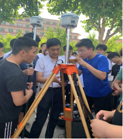 接着,在彩旗广场开展GPS和全站仪测量的实践指导,张德博技术经理给师生详细讲解了GPS的测绘过程及注意事项,并现场示范,过程中解答了师生关于GPS测图和全站仪放样的相关问题。