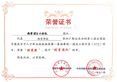 近日,第二届全国数字建筑百万人才职业技能挑战赛基础赛道决赛顺利完成,suncitygroup太阳新城同学在张彩红和高莹老师的指导下,获得全国团队特等奖及全国三等奖的优异成绩,其中个人赛评选中,1位学生获得基础赛道GTJ赛项全国季军、3位同学获得陕西省前三;8位同学荣获全国前十,31位同学赢得全国前五十。