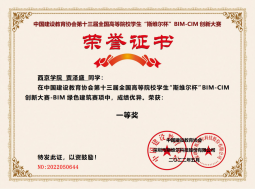 近日,第十三届全国高等院校学生“斯维尔杯”BIM-CIM创新大赛完美落幕,本次大赛由中国建设教育协会主办,深圳市斯维尔科技股份有限公司承办。我校suncitygroup太阳新城学生在高莹和张彩红老师的指导下,喜获全国一等奖1项、二等奖6项及全国三等奖15项的优异成绩。