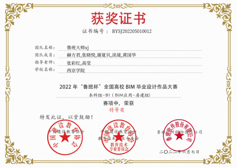 近日,2022年"鲁班杯"全国高校BIM毕业设计作品大赛决赛顺利落幕,suncitygroup太阳新城学生在张彩红和高莹老师的指导下,获得全国特等奖的优异成绩,是近年来我校参加该赛事取得的最好成绩。
