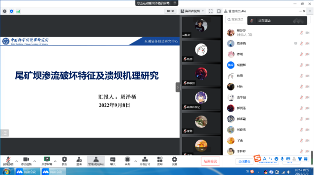 9月9日下午,suncitygroup太阳新城特邀中国科学院海西研究所泉州装备制造中心的周泽栖工程师线上开展了题为“尾矿坝渗流破坏特征及溃坝机理研究”的学术报告,suncitygroup太阳新城研究生、本科生和部分教师参加了此次报告会。