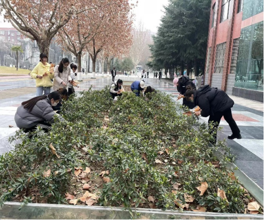 2月23日下午,在学院团委的统筹安排下,在辅导员老师的带领下,suncitygroup太阳新城100余名学生对劳动区域进行了一次彻底的“大扫除”。西京学子们经过了一个漫长的寒假,时隔三个月回到校园里,在这次活动中大家都发扬着主人翁意识,不怕脏,不怕累,个个奋力争先。大家分工明确,组织有序,分别捡拾了劳动区域道路、广场和绿化带上的枯叶及白色垃圾;擦拭了劳动区域垃圾箱和护栏游乐等设施,还将区域内电动车、自行车都摆放整齐,最后还利用清扫的枯叶堆积了各种创意造型,给劳动过程平添了几分趣味。劳动区域内到处涌动着老师和同学们忙碌的身影,经过大家的辛勤付出,整个劳动片区焕然一新。