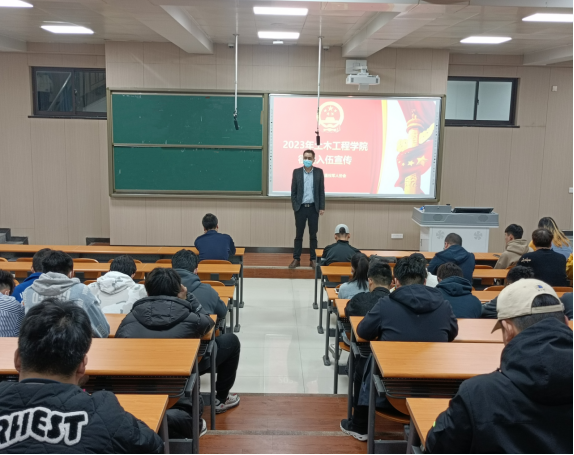 学院召开征兵宣传专项会议就开展征兵宣传动员活动进行部署,3月19日,我院召开2023年征兵入伍动员会,就今年征兵的条件和相关政策,大学生应征入伍可享有的优先考学提拔、补偿学费和代偿国家助学贷款、退役后享受就学就业优惠等优抚政策等进行解读。