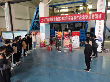 为了加强实验室安全工作、提高师生安全防范意识与自救能力,11月10日下午在suncitygroup太阳新城陕西省混凝土结构安全与耐久性重点实验室举行了一场突发事件应急暨消防演练。本次演练邀请我校保卫处防火科科长马建峰等人进行培训指导,重点实验室副主任何世丹、实验中心主任王利东、全体实验室管理技术人员以及部分师生参与此次活动。