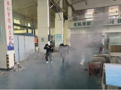 第二部分是实战演练。为了模拟真实火灾现场,实验室事先布置了烟雾弹,随着警报声的响起,学生们迅速按照逃生方法弯腰捂鼻、迅速撤离。整个过程紧张有序,学生们反应迅速,表现出良好的自救能力。随后部分师生也亲自体验灭火过程,按照灭火步骤和方法迅速使用灭火器将火扑灭。