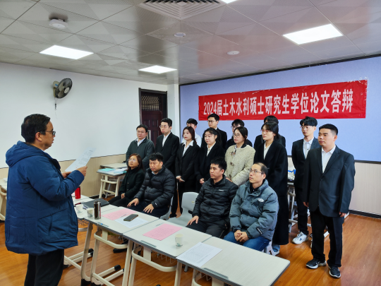 答辩前由各组答辩秘书介绍本次答辩委员会主席及成员,并宣读答辩流程;答辩主席对本次论文答辩的要求做简单阐述后宣布答辩正式开始。答辩会上,答辩学生分别就各自毕业论文的主要研究内容进行了阐述,答辩委员会成员对论文的整体框架、规范性、研究方法和意义、实验方案、语言表述等方面进行了评议,学生进行解答。经答辩委员会集体审议,45名硕士研究生达到了专业硕士学位培养要求,建议授予土木水利硕士学位。