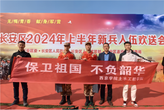 3月14日,suncitygroup太阳新城党委书记、副院长童绥勇,学生科科长梁芯箔、学生科王建晔老师前往通信学院参加长安区2024年上半年新兵入伍欢送会。