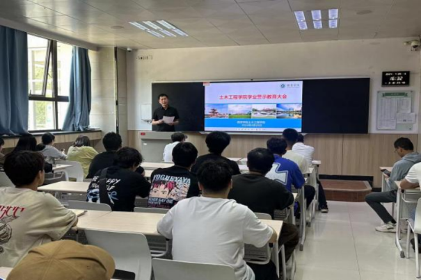 会上,学院综合办公室主任张创业首先宣读了学籍政策,对学业警示、留级、退学、毕业等学籍管理方面的规定进行了详细说明。随后,学院督导郑军兴副教授针对学生学习情况与考试情况进行了分析,他指出导致学业困难的不同原因,鼓励学生挖掘学习内动力,培养坚持不懈与持之以恒精神。任课教师与班主任代表李小伟老师也在会上发言。她强调了“意识、目标、规划、坚持”这四个关键词在学习中的重要性,激励学生拾起学习激情,明确学习目标,制定学业规划,并持之以恒的努力。