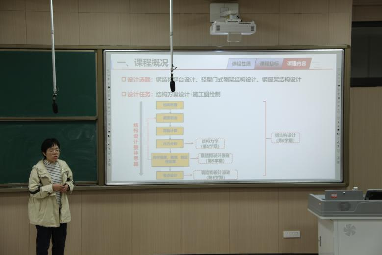 首先,进行说课展示的是董芳菲老师,作为我校的优秀骨干教师,她主讲《钢结构设计原理》和《钢结构设计》等课程。在本次说课环节,董老师以“钢结构设计课程设计的改革与实践”为主题,分享了她在课程设计中的创新思路与实践成果。董老师详细讲解了如何通过改革课程设计,提高学生的实践能力和综合素质,使理论与实践更好地结合。她的讲解深入浅出,得到了在场教师的一致好评。