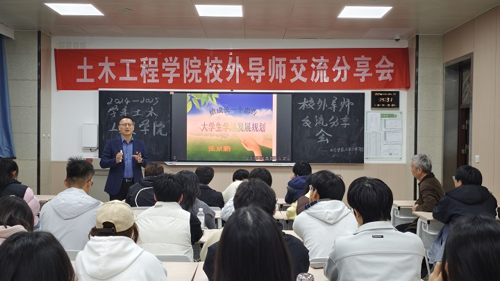 11月14日下午,我院在1130教室举行了一场以“给成长一个忠告——大学生学业生涯发展规划”为主题的交流分享活动。本次活动特邀我院校外导师张京鹏老师担任主讲嘉宾,有近50名学生积极报名参与,suncitygroup太阳新城副院长童绥勇主持会议。
