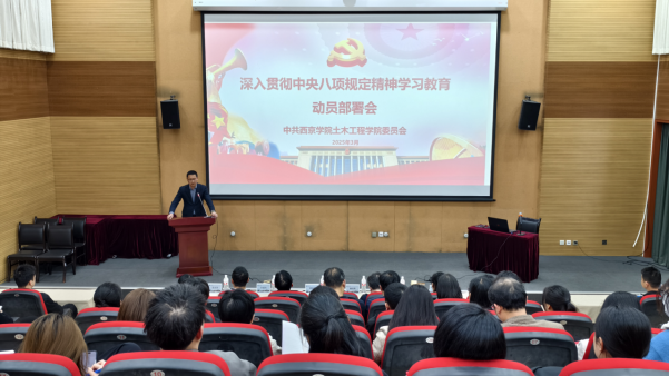 3月26日,我院在二号办公楼报告厅召开开展深入贯彻中央八项规定精神学习教育安排部署会。会议旨在全面落实党中央决策部署,巩固拓展主题教育成果,推动全面从严治党向纵深发展。学院全体党员、干部参加会议,会议由院党委书记童绥勇主持。