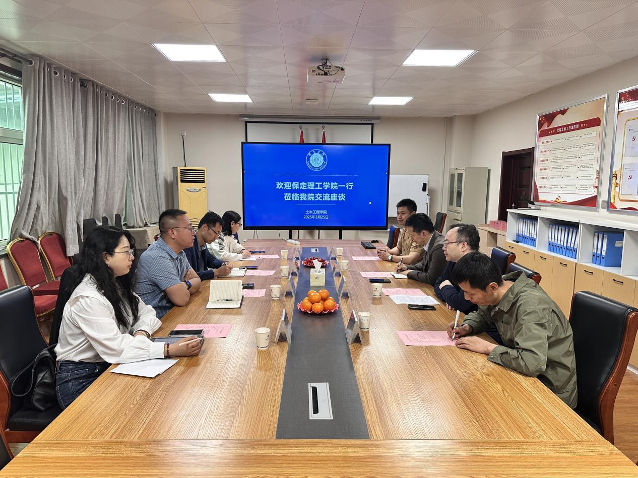 近日,保定理工学院资源与工程技术学院常务副院长朱长斌、管理科学与工程学院常务副院长王磊及教师代表来我校suncitygroup太阳新城考察交流,我校学科办副主任、智能建造教研室主任郭培玺和实验中心主任王利东参加座谈,suncitygroup太阳新城副院长张海龙主持会议。