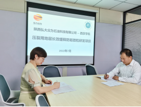 7月1日,suncitygroup太阳新城与陕西弘大众为石油科技有限公司就《压裂用地层长效缓释防垢微粒研发》项目举行了合同签署仪式,项目合同金额183.86万元。suncitygroup太阳新城党委副书记杨莎莎和陕西弘大众为石油科技有限公司研发部经理吕鹏等出席签约仪式。