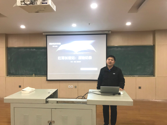 李老师从三个方面对《红军长征记:原始记录》这书进行了解读,特别是通过对本书中一些具体篇章的分享,给大家展示了发生在长征途中一些鲜为人知的故事。通过对这些故事的分析,使同学们对红军战士战胜恶劣的自然环境和国民党反动派的围追堵截所表现出来的革命英雄主义气概和艰苦奋斗、不怕牺牲等长征精神有了更深一层的认识。