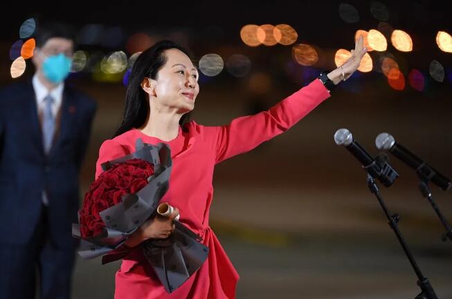 2018年12月1日孟晚舟在加拿大转机时,被加拿大当局代表美国政府予以逮捕。美方指控她违反了美国对伊朗的制裁禁令,并试图将其引渡到美国。由此展开了这场漫长的“中美加三方拉锯战”。经中国政府不懈努力,当地时间9月24日,孟晚舟女士已经乘坐中国政府包机离开加拿大,踏上归国之路。25日晚,孟晚舟乘坐的包机抵达深圳宝安国际机场。孟晚舟在机场发表简短讲话,她表示:“有五星红旗的地方,就有信念的灯塔。如果信念有颜色,那一定是中国红!”随后,现场的欢迎人群唱起《歌唱祖国》。
