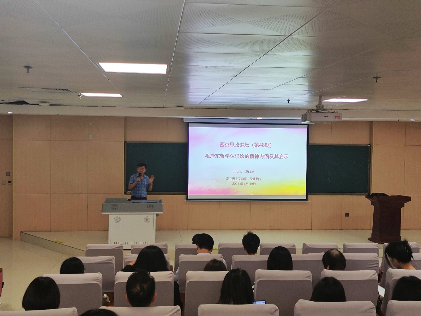 6月19日下午,第四十八期西京思政讲坛在图书馆102报告厅顺利举办。本次讲坛邀请延安大学政治与公共管理学院教授冯晓峰作题为《毛泽东哲学认识论的精神内涵及其启示》的学术报告。本次讲座由我校马克思主义学院副院长杨宝国主持,马克思主义学院教师和行健书院学生代表参加讲坛。