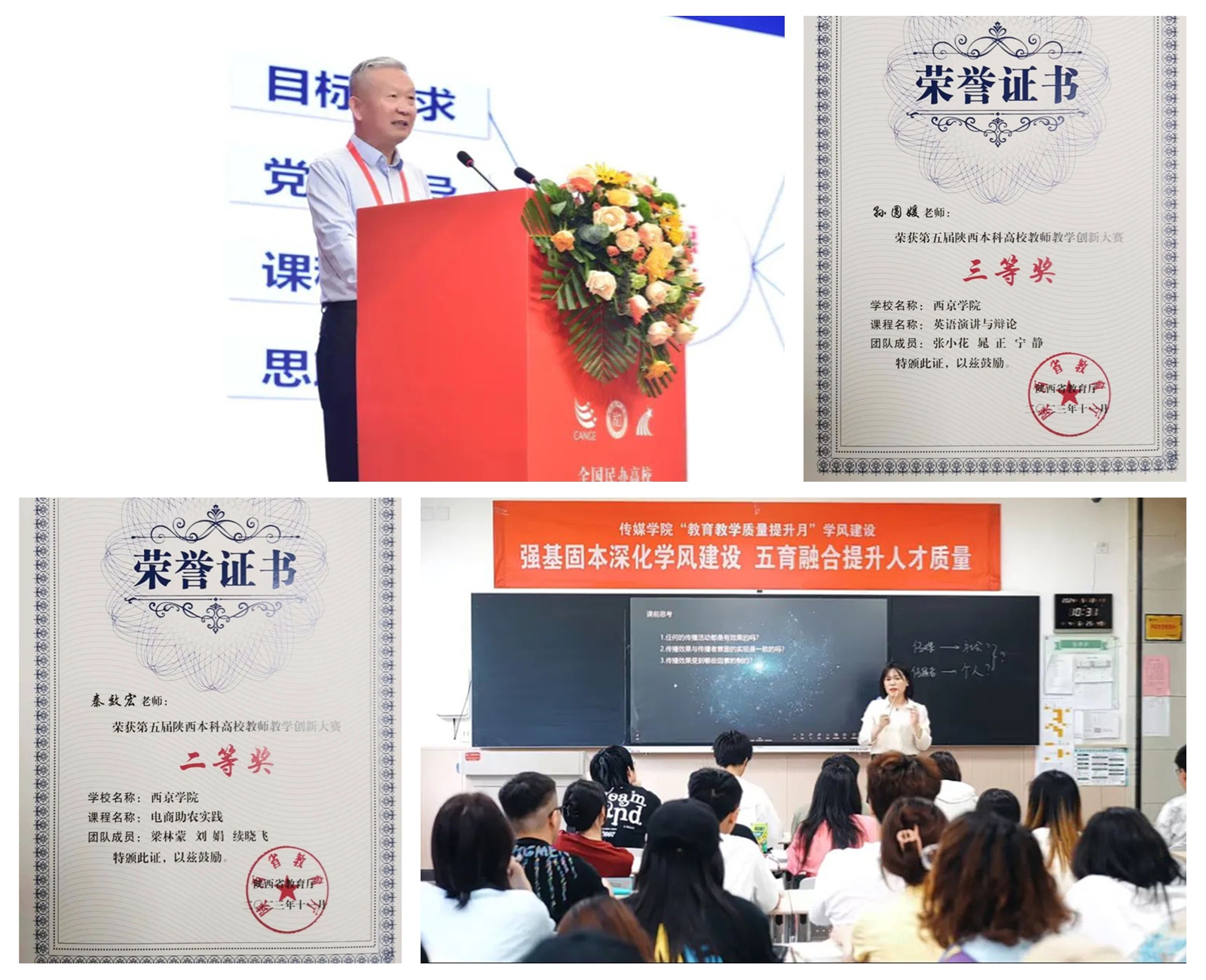 在提升教师思政育人能力方面,我校出台《我校推进“大思政课”建设实施方案》,引导教师增强课程思政的思想自觉和行动自觉。坚持以赛促教、以赛促研,通过举办课程思政“大练兵”活动、教学创新大赛、混合式教学设计创新大赛等赛事活动,激励引导教师积极投身课程思政教育教学改革与创新。近年来,教师获省级课程思政“教学能手”称号1人,获第五届陕西高校教师教学创新大赛课程思政组二、三等奖各1项。我校副校长王正斌受邀在“全国民办高校课程思政教学改革研讨会”上作了题为《课程思政高质量建设的思考与实践》的专题报告。